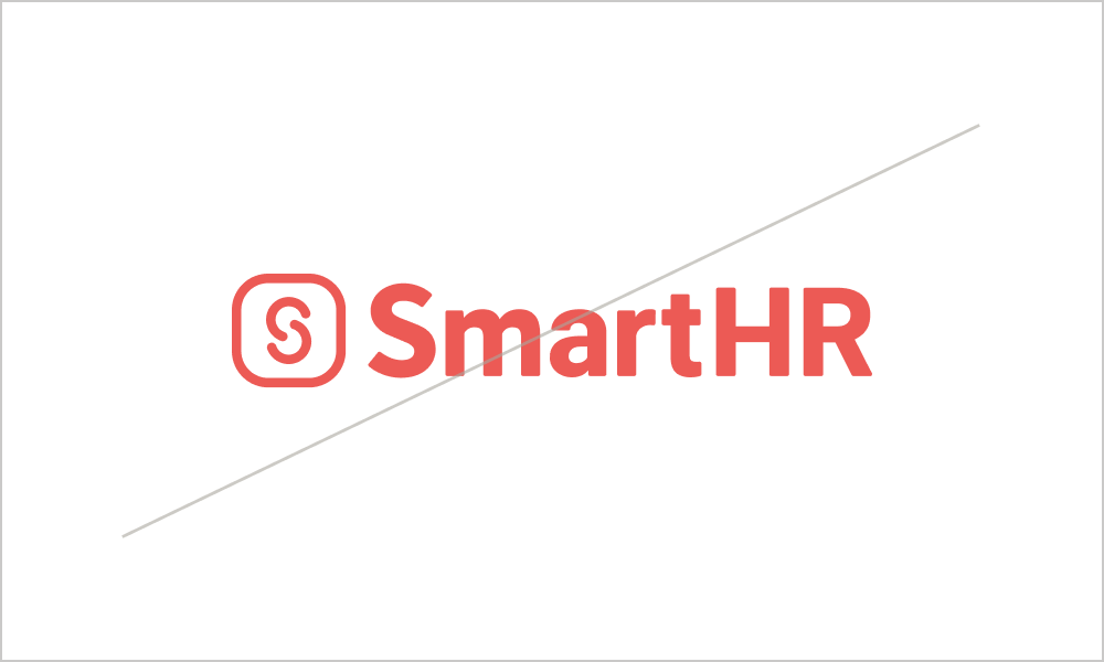 モーションロゴの上に「スマートエイチアール」というふきだしを重ねた画像に、斜線が引かれている