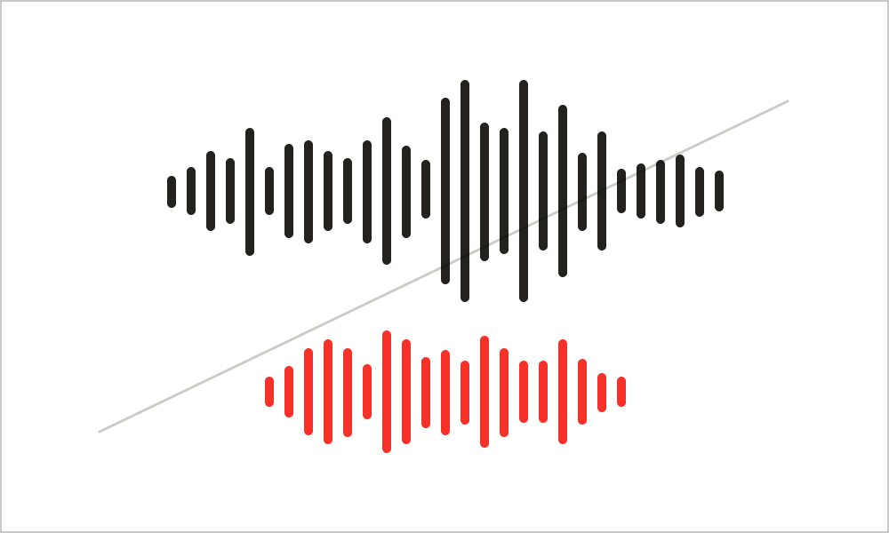 モーションロゴの音声に他の音声を重ねた音声波形の図に、斜線が引かれている